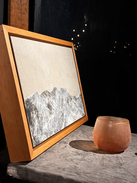 Montañas 1 - pintura original con pigmentos naturales - marco de madera